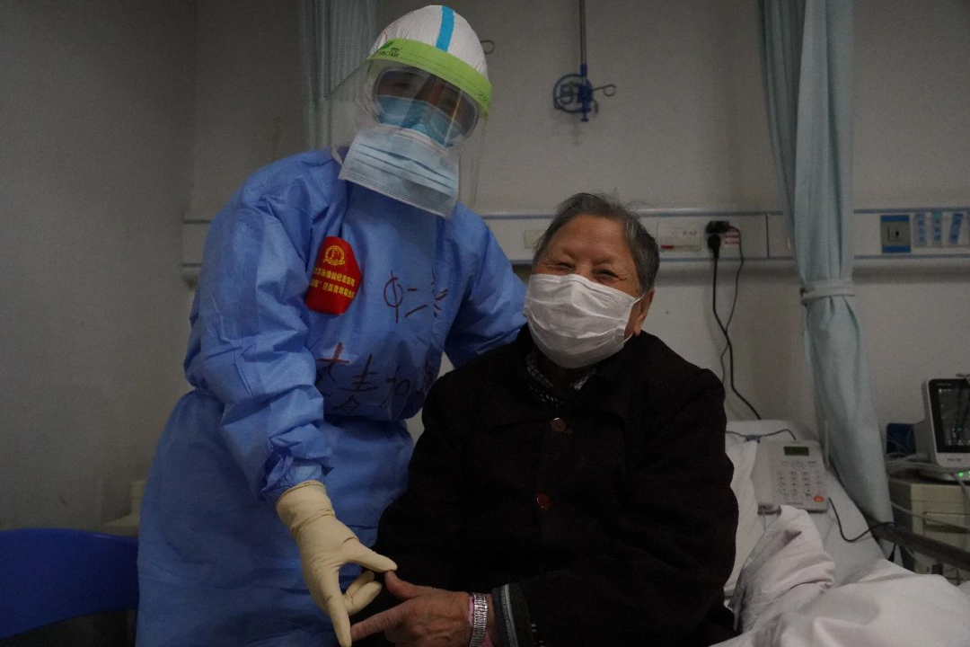 2月21日沈小莓(右一)在武汉协和西院病房抢救89岁老奶奶