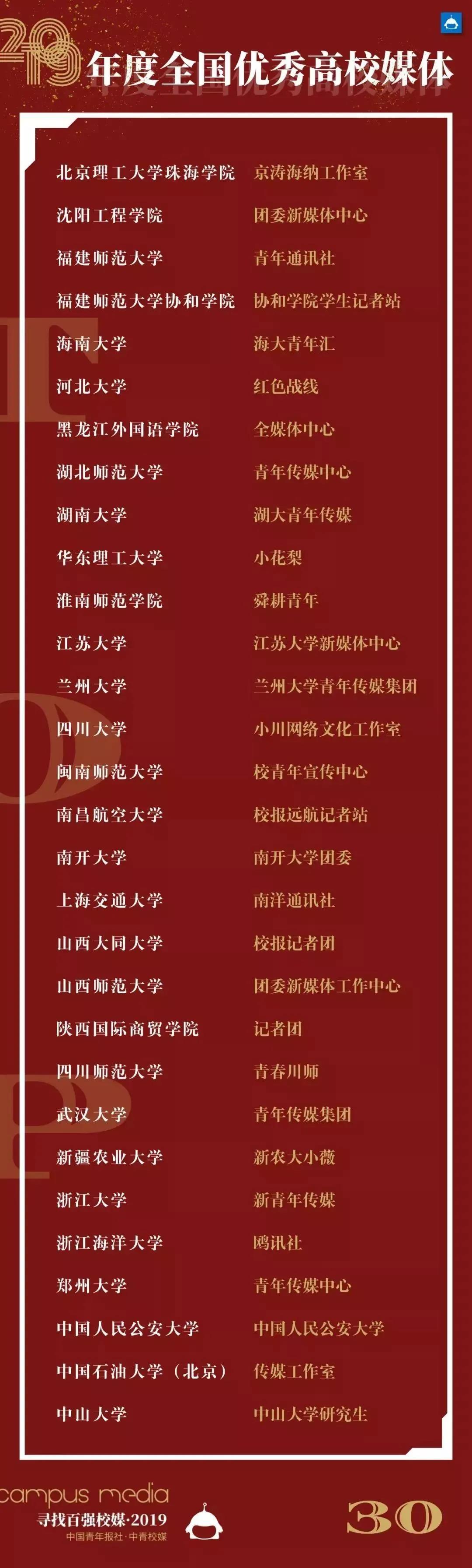 2020年1月,“304永利研究生”公众号从广东省70多家、全国1000多家校园媒体中脱颖而出,作为百强中唯一一家高校研究生会校媒成功入选2019年度全国优秀高校媒体。