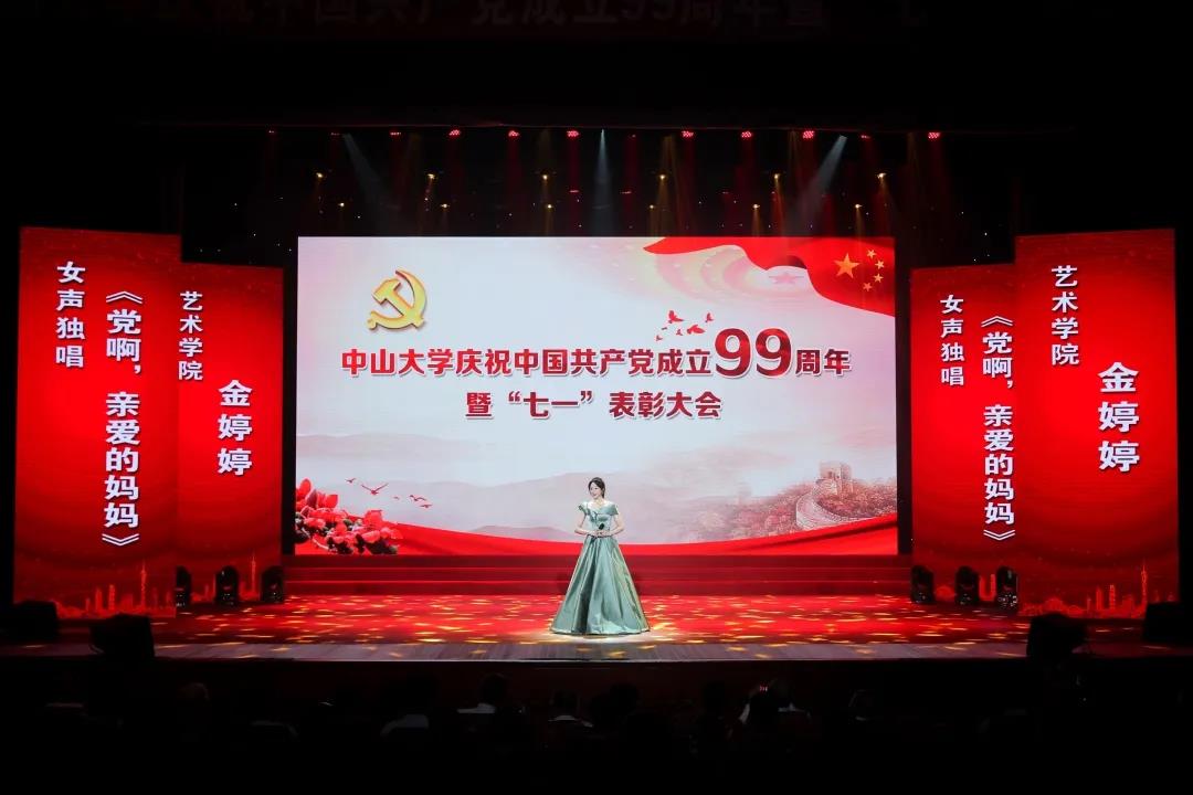▲艺术学院副院长金婷婷表演女声独唱《党啊,亲爱的妈妈》(来源:党委宣传部)